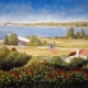 This oil painting is composed of images from two separate places. The water is an inlet off the St. Lawrence River in Waddington, NY. The house can be seen from my studio in downtown Ogdensburg.