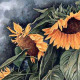 This watercolor painting portrays several symbols of these opposing forces. The delicate light softness of the Day Lily contrasted by the dark hardness of wrought iron. The graceful swaying curves of the flower formed by nature is innately different from the man made straight and controlled quality of the fence. Adding to this contradiction is an element of time. The fleeting short life of the Day Lily as compared to the decades the fence can exist. And finally color itself is a factor, for the purple hues of the background are the opposite or complementary color of the yellow in the flowers.