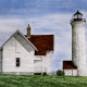 The Ogdensburg Lighthouse is a prominent feature of the skyline as seen looking north towards Canada. In the fall the sun sets behind the lighthouse providing dramatic back light. The clouds with a silver lining were a bonus. Oil on hardboard.